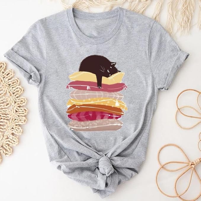 Womens Vintage Graphic Tee Shirt Cat Print Short Sleeve Loose Tunic Tops Gothic Oversized Punk Baggy Shirts