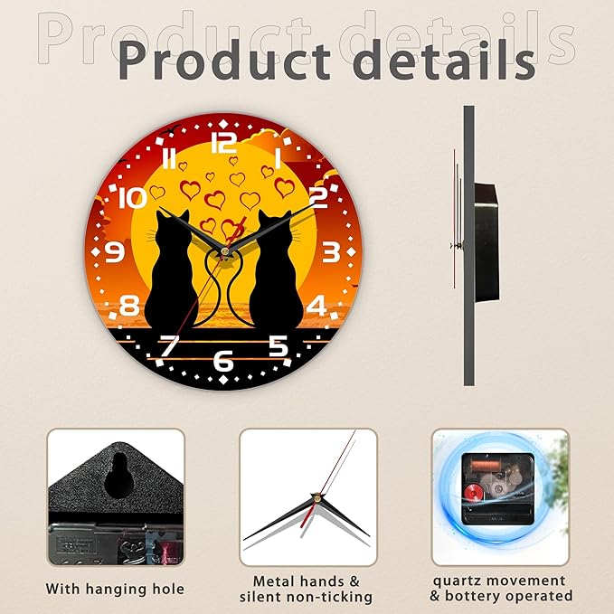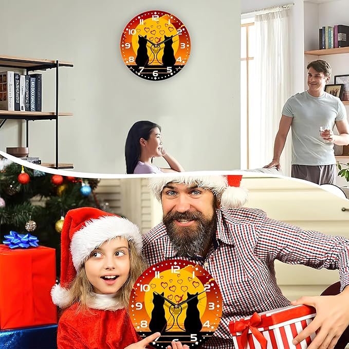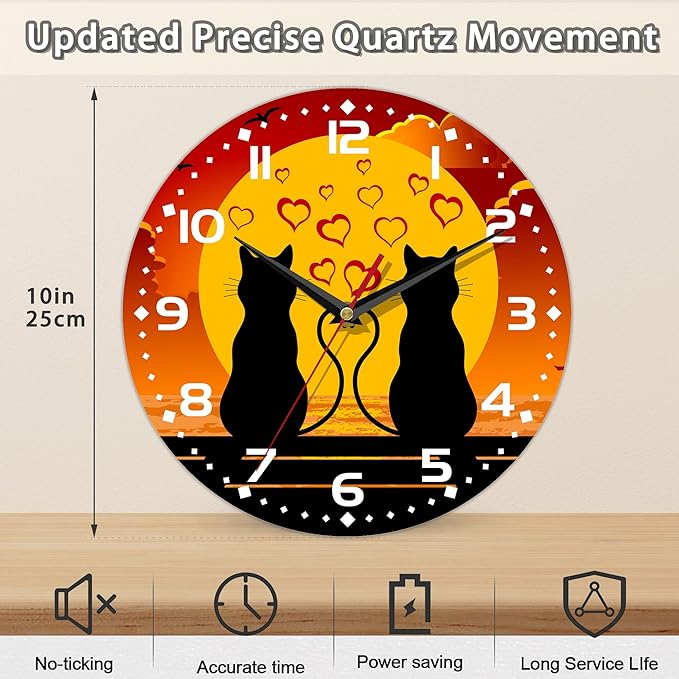 Two Cats in Love Seaside Wall Clock, Contemporary Easy to Read Decor for Living Room, Bedroom, Bathroom, and Kitchen, 10 Inch