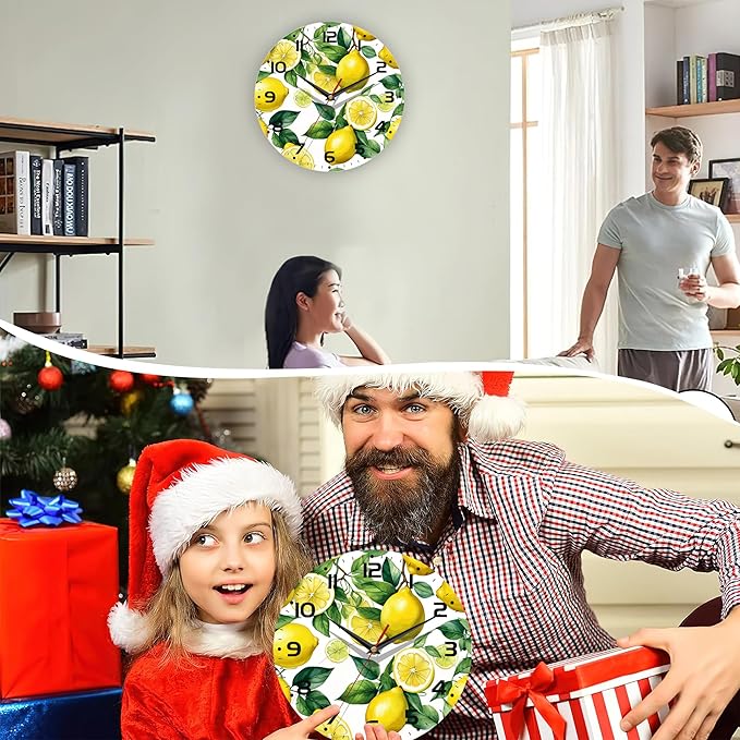 Wall Clock, Watercolor Lemon Wall Clock Silent Non-Ticking Battery Operated Clock 10 Inch, Home Decor for Living Room, Kitchen, Bedroom and Office