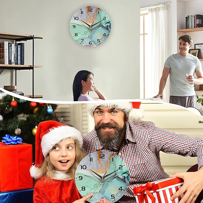 Watercolor Abstract Painting Marble Wall Clock Vintage Wooden Wall Clock Silent Non-Ticking Battery Operated Arabic Numerals Wall Clocks Decorative for Kitchen, Office, Classroom 10 Inch