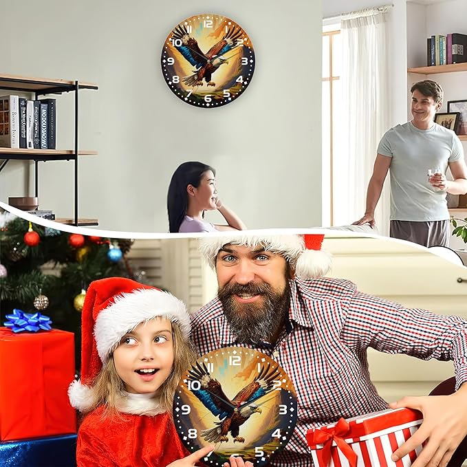 Wall Clock, Abstract Colorful Eagle Flying Wall Clock Silent Non-Ticking Battery Operated Clock 10 Inch, Home Decor for Living Room, Kitchen, Bedroom and Office