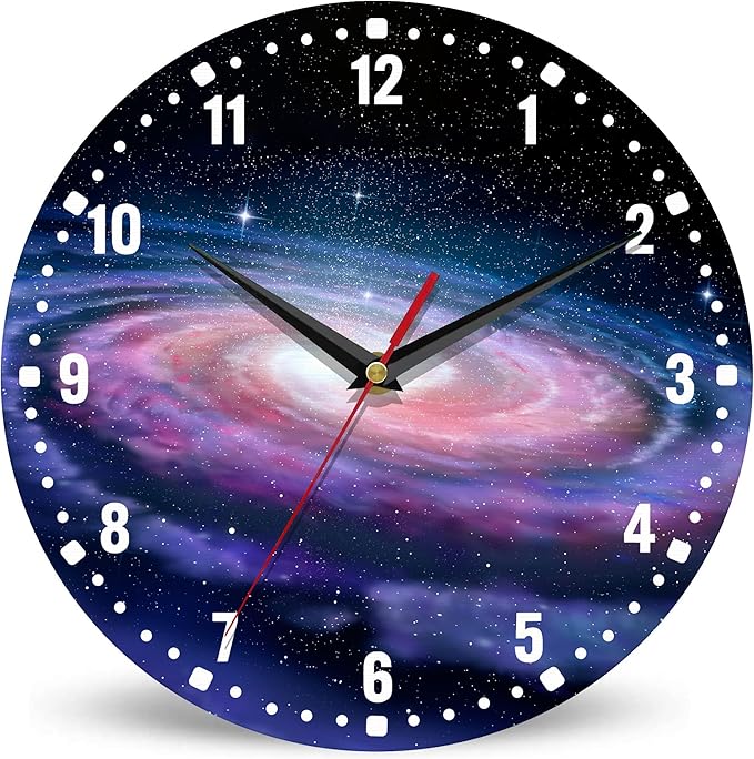 SPUNKER Clocks for Living Room,Spiral Galaxy Kitchen Wall Clock,Milky Way Space Clocks 10 Inch Silent Non-Ticking Wall Battery Operated for Living Room Bedroom Bathroom Laundry Room Decor