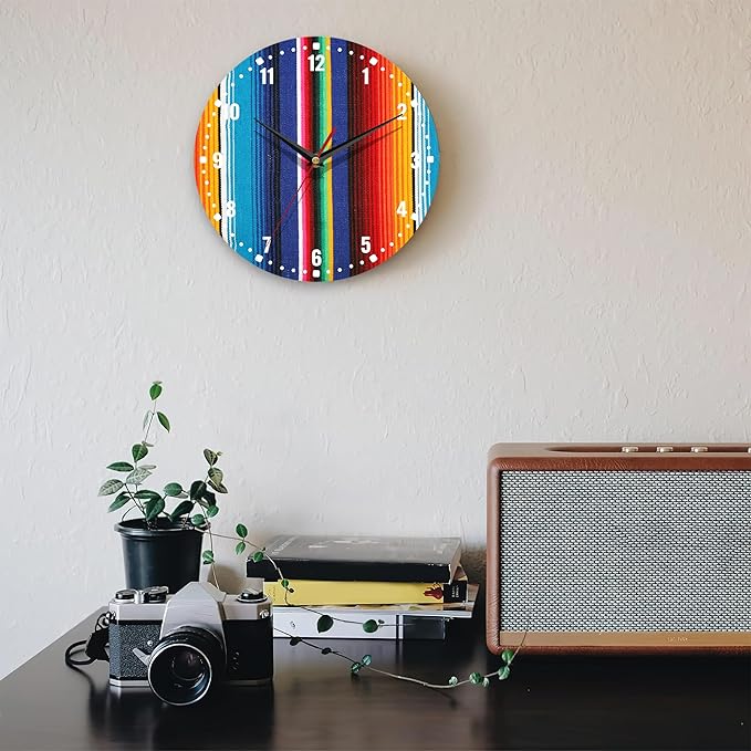 SPUNKER Wall Clocks,Colorful Mexican Wall Clocks for Living Room Decor,Stripes Lines Art Kitchen Clocks Wall Battery Operated - 10 Inch Round Bathroom Wall Clock Silent Non-Ticking