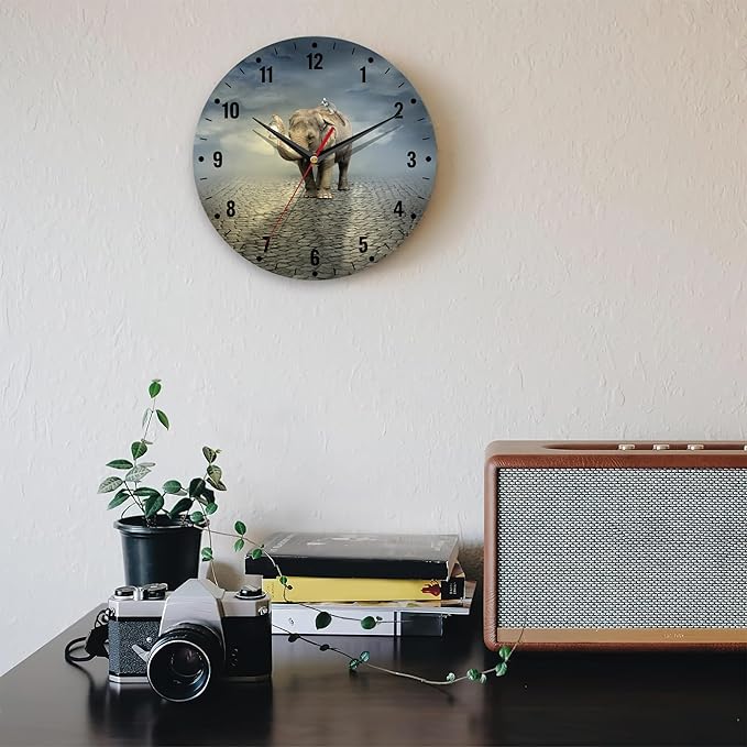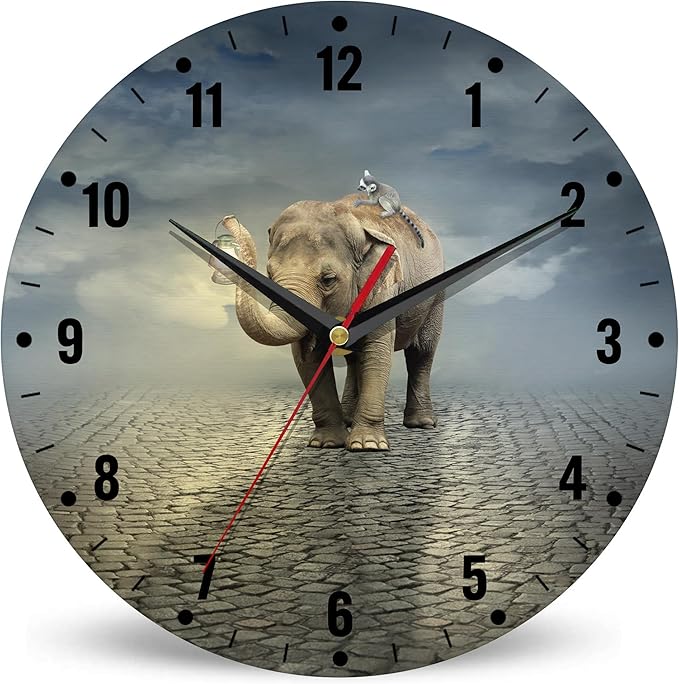 SPUNKER Wall Clock,Elephant Wall Clocks,African Animals Lantern Battery Operated Wall Clock Silent Non-Ticking Decorative for Home Kitchen Bathroom Living Room Bedroom Office 10 Inch