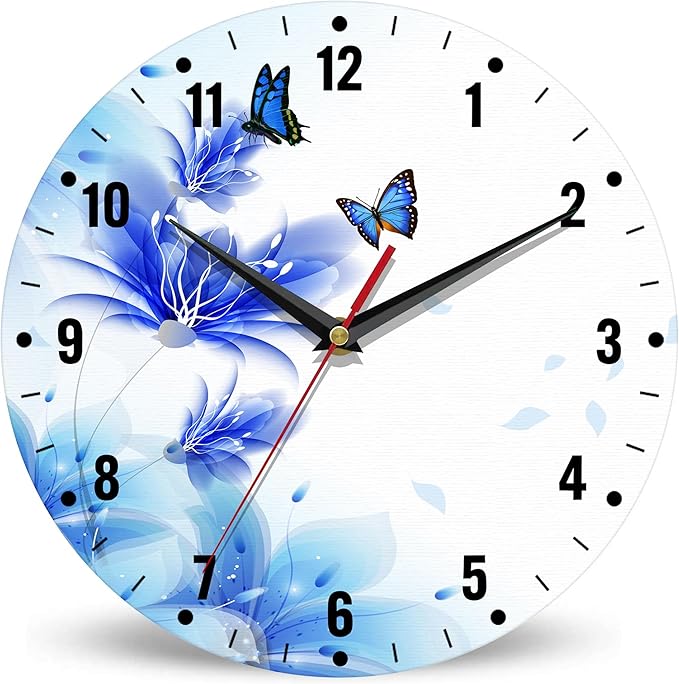 SPUNKER Clocks for Living Room,Blue Butterfly 10 Inch Wall Clock,Lily Flower Small Battery Operated Wall Clocks Decorative for Kitchen/Living Room/Bedroom/Bathroom/Dining Room
