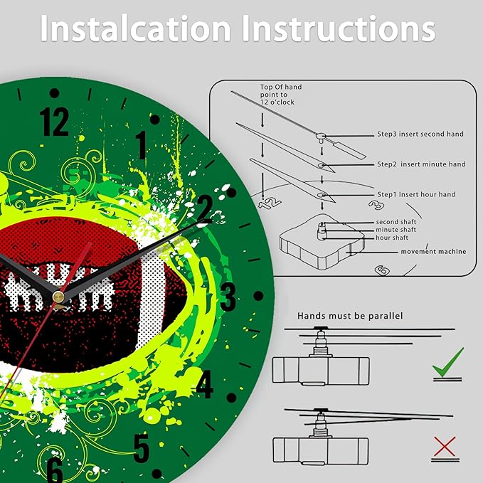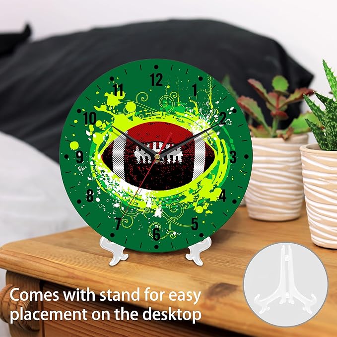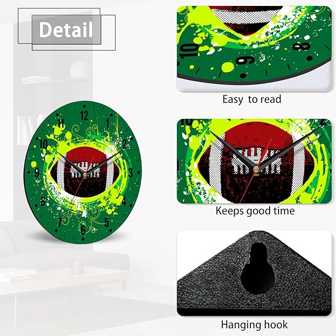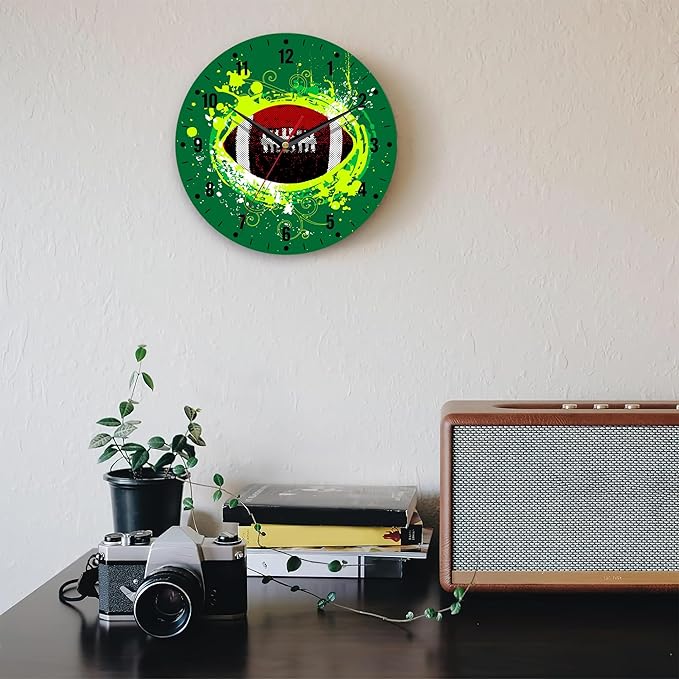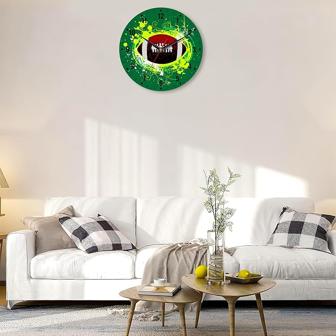 SPUNKER Wall Clocks,American Football Wall Clocks,USA Sport Ball Battery Operated Wall Clock Silent Non-Ticking Decorative for Home Kitchen Bathroom Living Room Bedroom Office 10 Inch