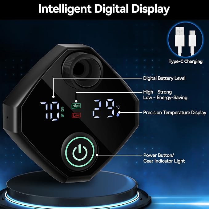• Personalized Display Screen - The portable pump’s LED display screen shows real-time water temperature and power status. The water temperature range is 32-140°F (0-60°C). If the water temperature is below 35℃, the indicator is blue; between 35-45℃, the indicator is green; above 45℃, the indicator is red. This feature prevents scalding in high temperatures and ensures safe usage.