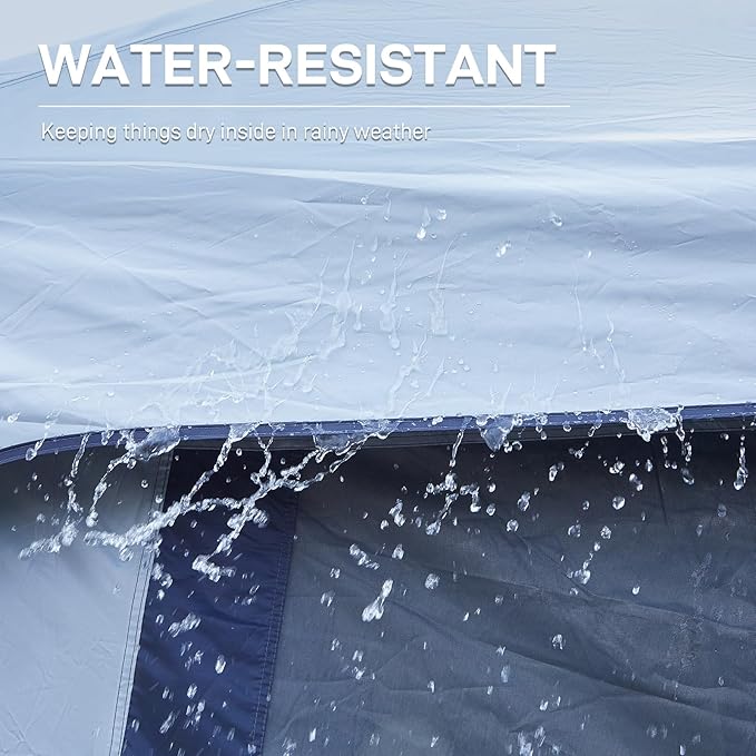 - VARIABLE: The side door can be turned into an awning to provide plenty of shade when needed. And this black out tent is made of water and sun-resistant, dark interior fabric for a better camping environment.
