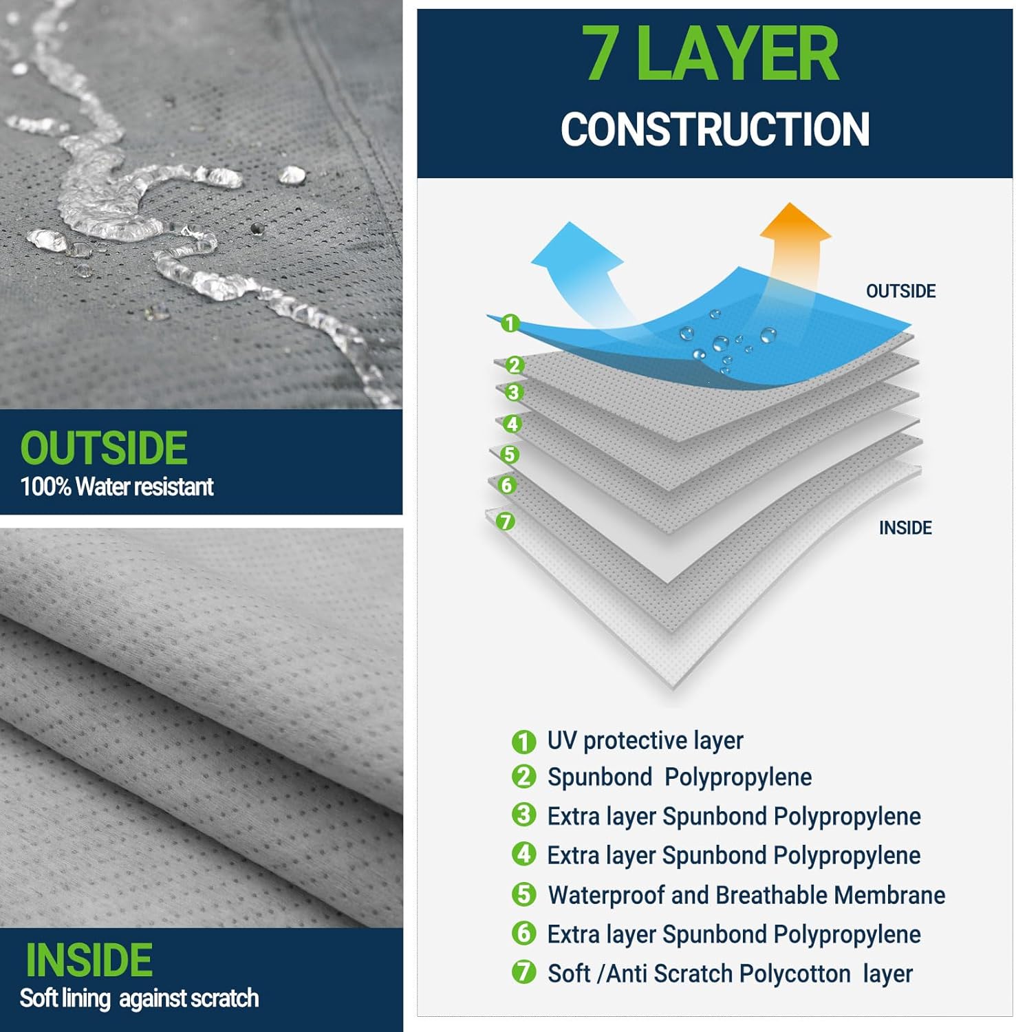 All Weather Waterproof SUV Car Cover, 7-Layer Non-Woven Cotton Car Covers for Automobiles SUV Snow Cover, Full Exterior Covers, Winter Rain Sun, Grey, Size SUV S2
