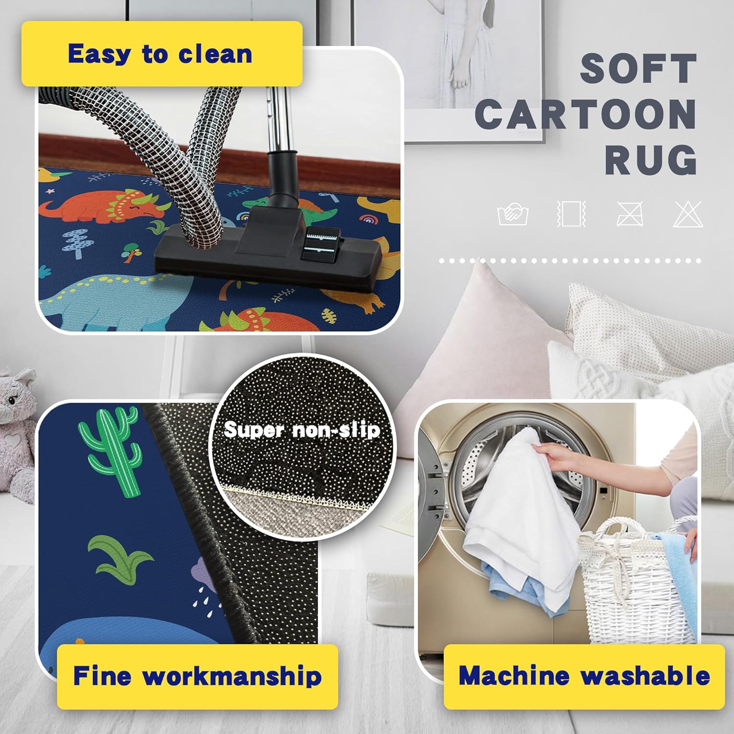 - Practical Non-Slip & Machine Washable:Equipped with a non-slip backing to prevent sliding on floors, enhancing safety. Machine-washable design allows for easy cleaning of spills and stains, keeping the rug looking fresh.