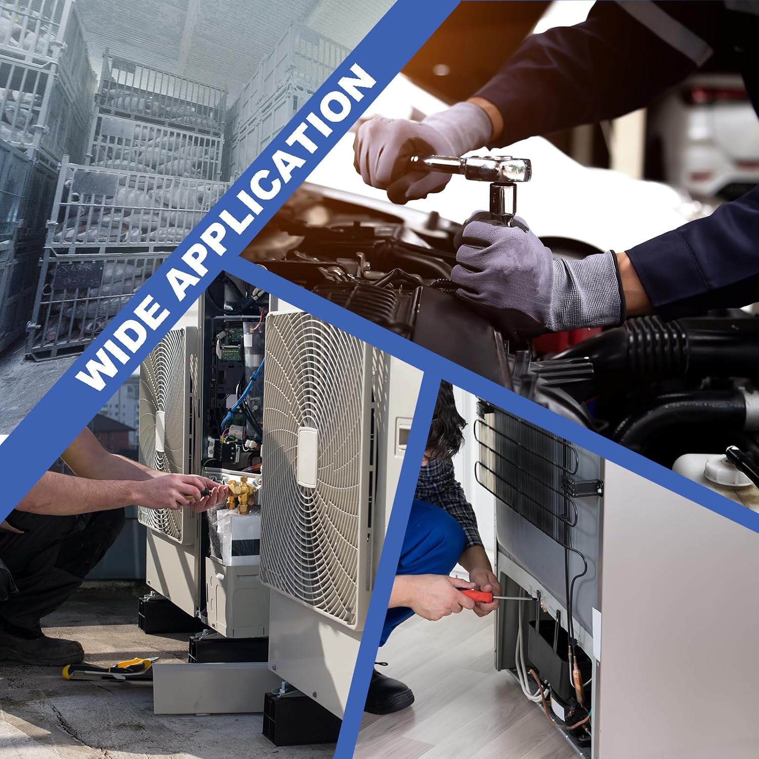 - MULTIFUNCTION GAUGES: Digital manifold gauge can not only complete the pressure/temperature test when refrigerant is charged, and refrigerant condensation/evaporation pressure and temperature can be automatically tested. Vacuum test can measure the value and percentage of vacuum pressure to determine the air tightness of the pipeline, you can observe the pressure difference to determine whether there is a leak in the refrigeration system pipeline, and record the duration of the leak test.