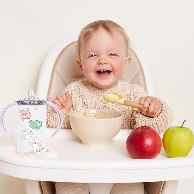 6 Pack Sublimation Blanks Sippy Cup Baby Bottle with Handles Straight Stainless Steel Insulated Skinny Tumblers with Splash proof Lid 12 oz Shatterproof Water Tumbler