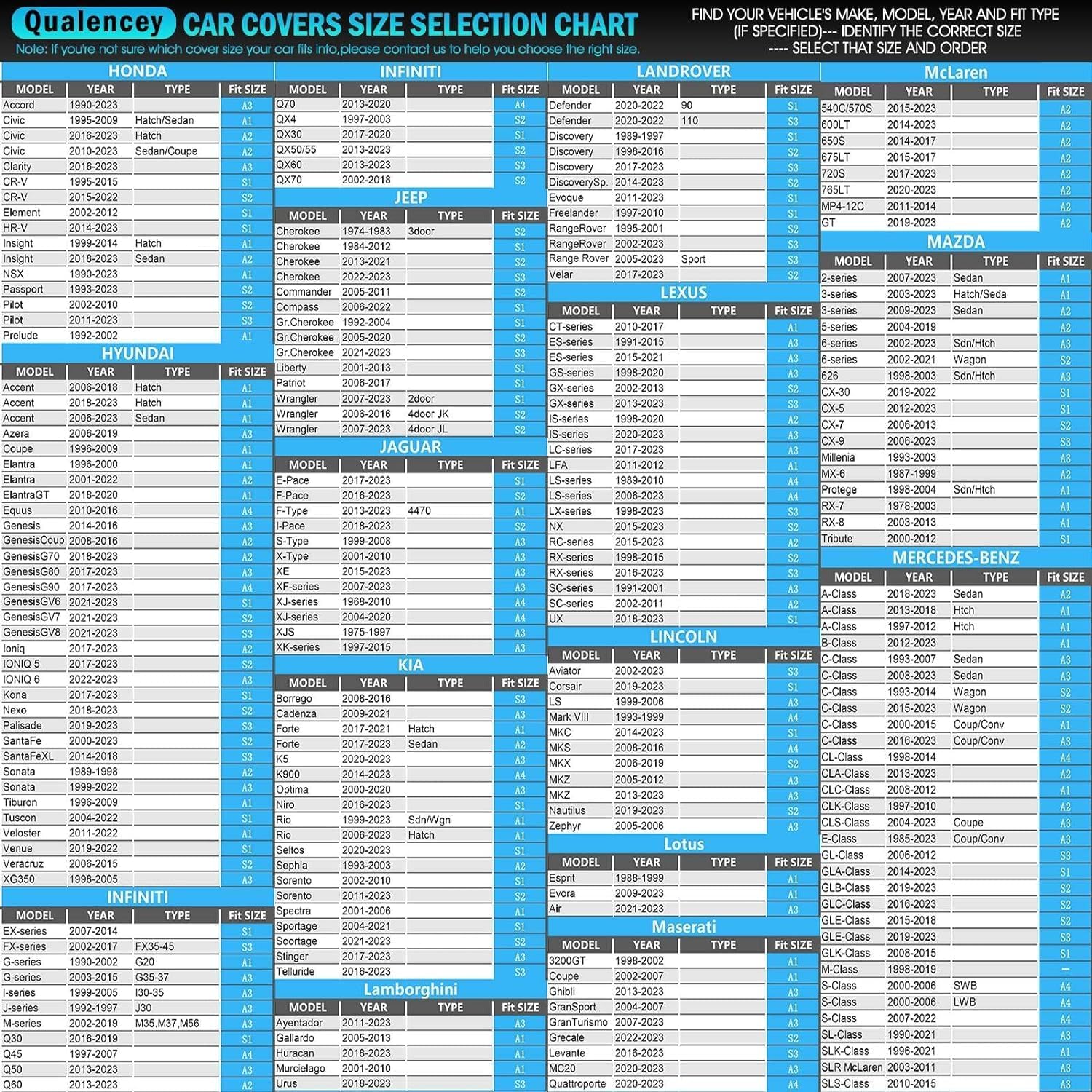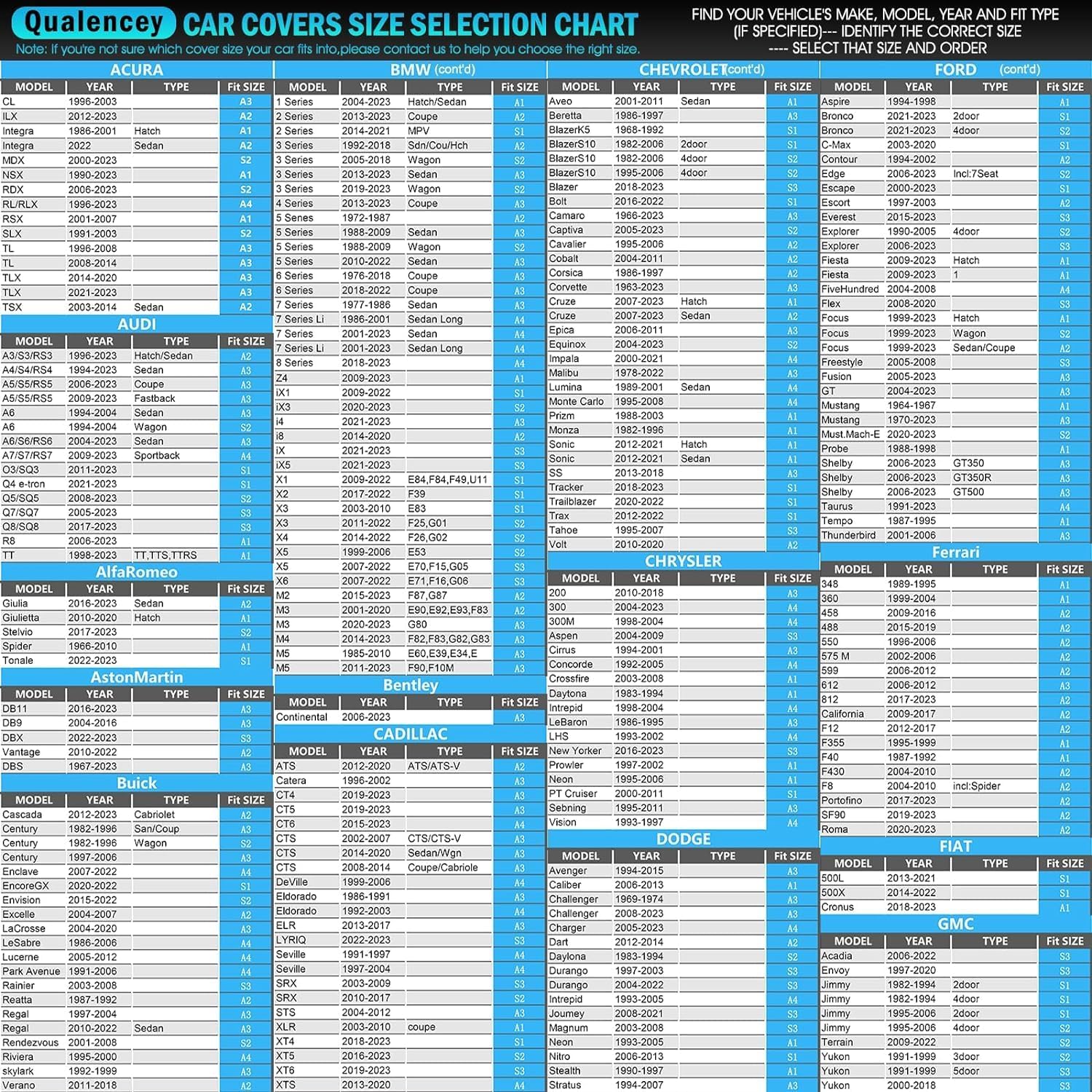 - 【Complete Protection】: The Qualencey car cover is perfect for indoor and outdoor use, protecting your car from UV rays, snow, rain, frost, sand, dust, leaves, branches, and birds, whether in sunlight or cold weather.