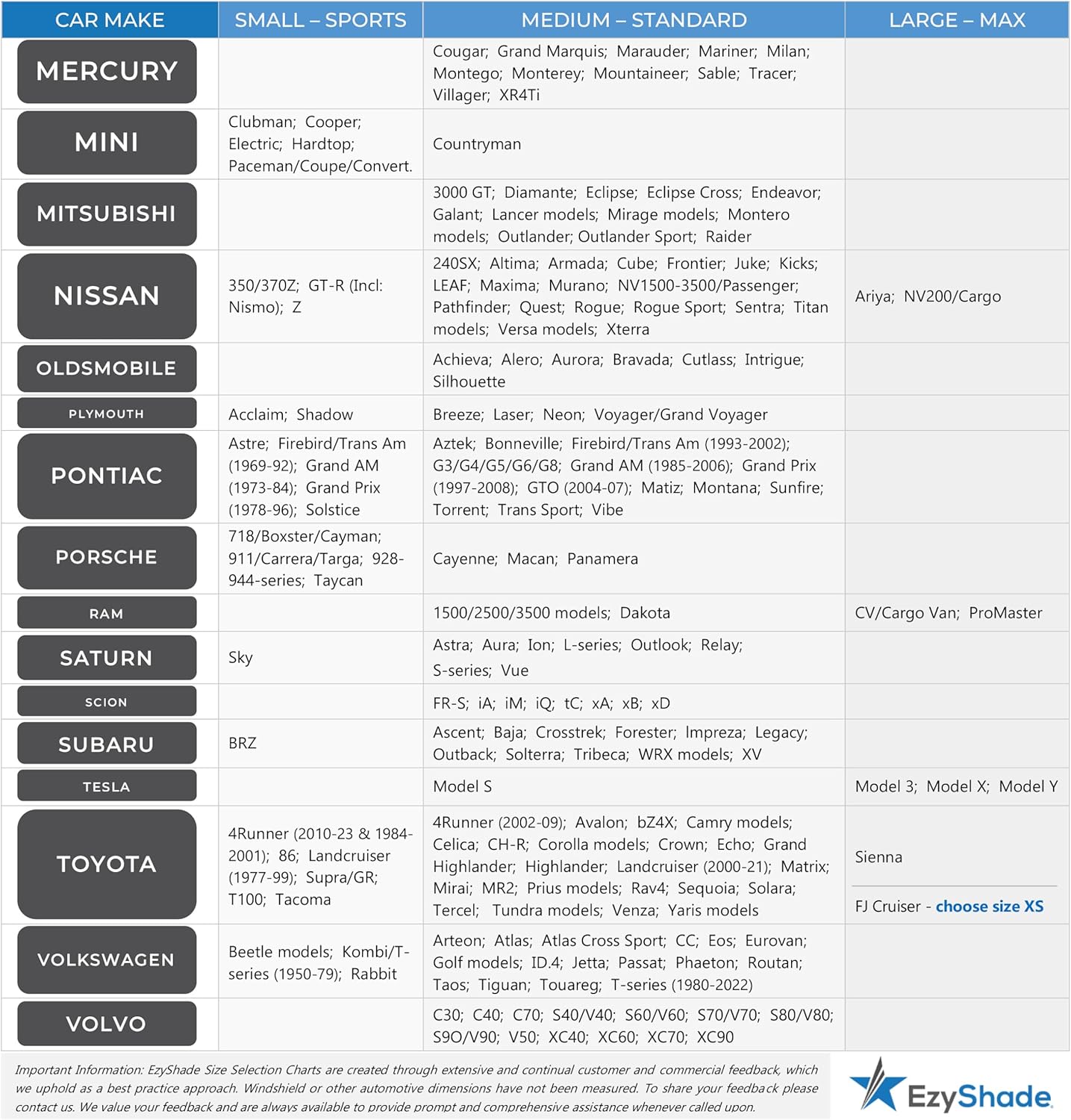 - Best Coverage Best Fit: Custom designed to fit the unique windshields of Jeep Wrangler, Gladiator, Renegade, and Toyota FJ Cruiser models, EzyShade’s X-Small 2 piece sun shades will provide the coolness, comfort and custom-like fit you’re looking for.