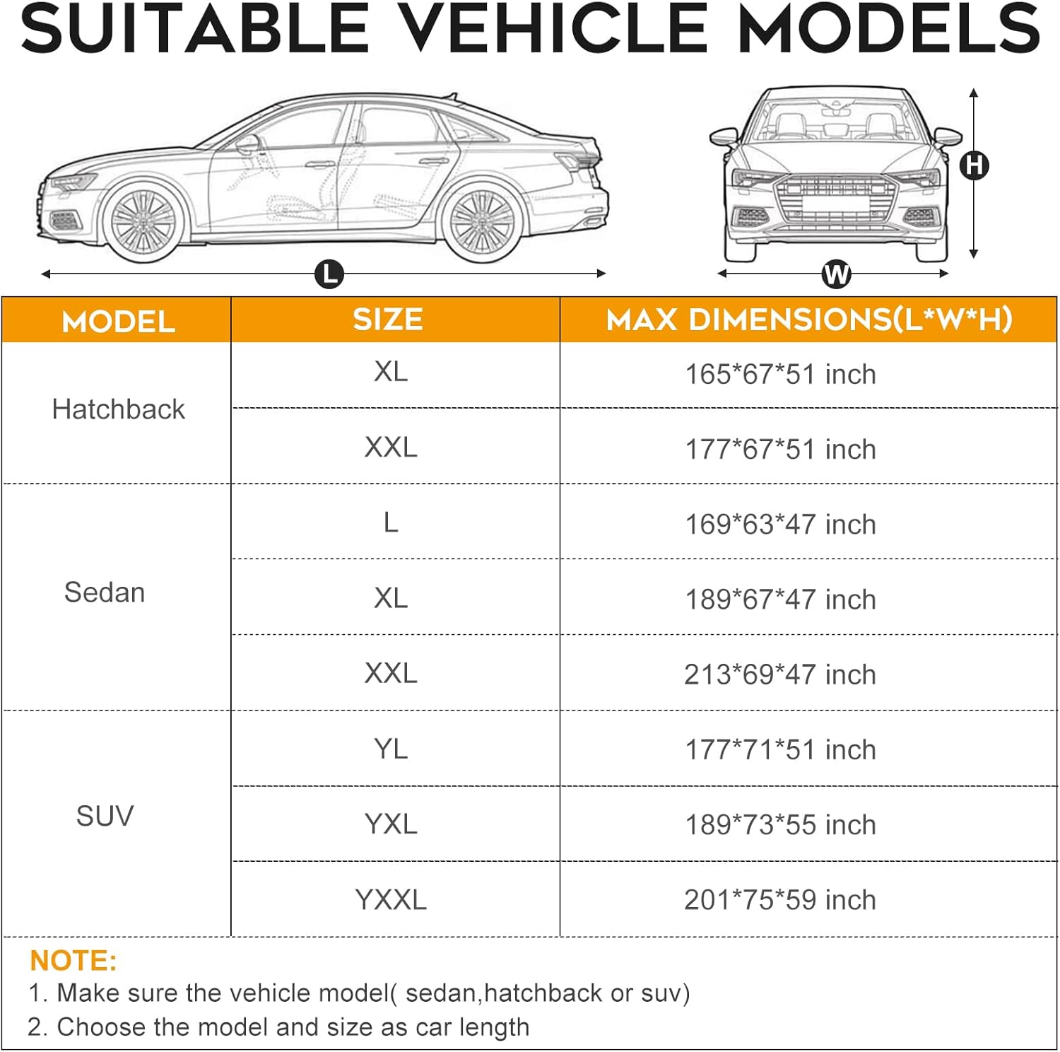 - Universal Fit for SUVs (Up to 177 inches) - Designed for SUVs and crossovers up to 177 inches in length, this car cover provides a perfect fit for vehicles like the Honda CR-V, Toyota RAV4, Ford Escape, Nissan Rogue, Mazda CX-5, and Chevrolet Equinox. It offers excellent coverage and superior protection for your SUV.