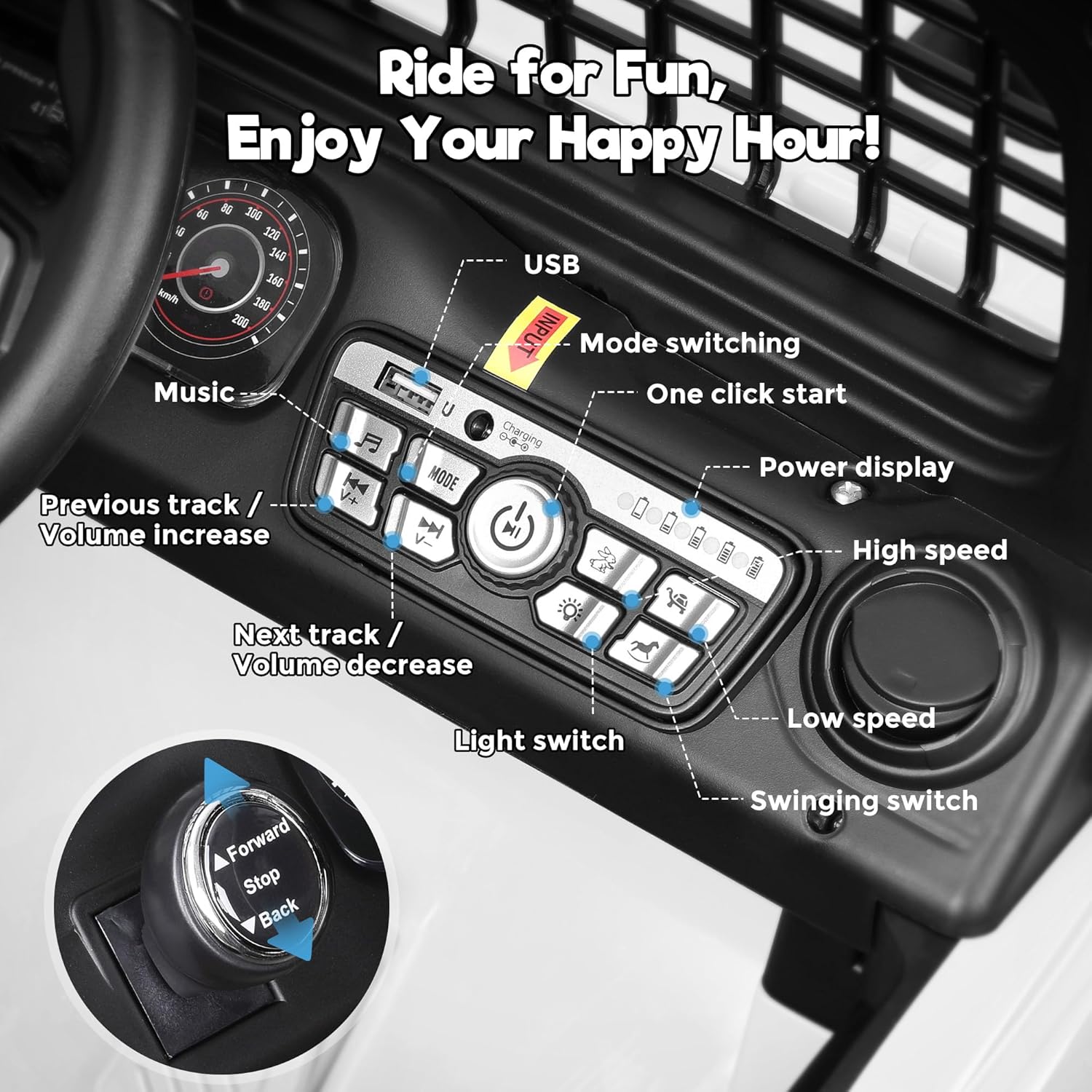 - Dual Modes for Safety and Independence: The kids electric car offers two driving modes—parent remote control mode for safe steering and self-driving mode for independent exploration. Perfect for toddlers under parental guidance or older kids ready to take the car, it ensures both safety and endless fun