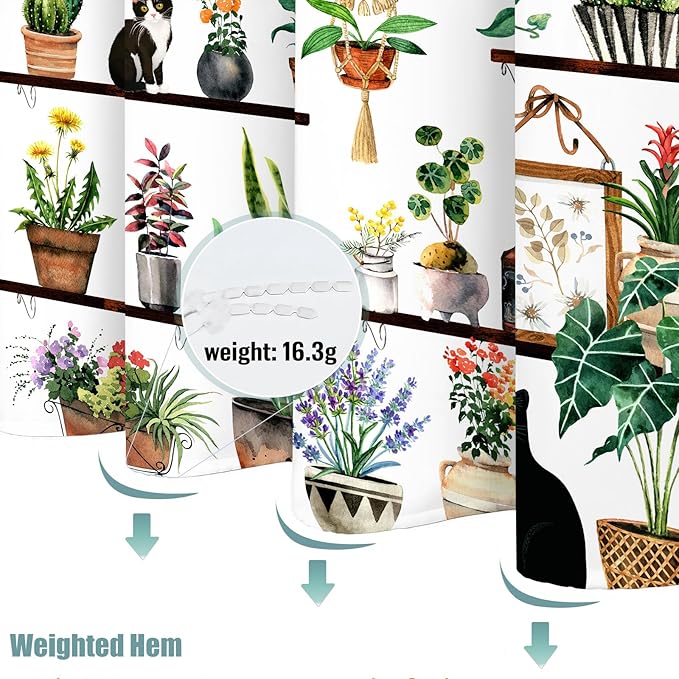 - Charming Plant and Cat Design: This shower curtain features a delightful design of plants and cats, adding a touch of nature and whimsy to your bathroom.
