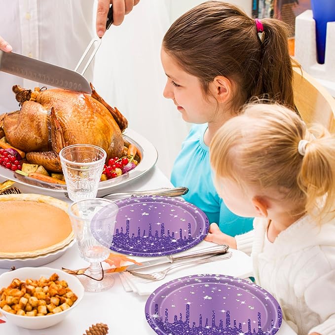 - 【Widely Use】This solid purple silver themed party set is perfect for any themed party occasion and daily life, and is perfect as a tableware for birthday parties, barbecues, summer-party, gatherings, indoor and outdoor events, arts and crafts projects, baby shower, homecoming, Children's Day, graduation ceremony, bachelor party, picnic, Thanksgiving Day, and celebrations.
