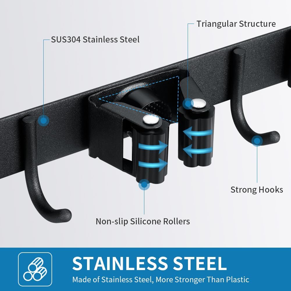 - 🏠【STRONGEST HOLDER】-Broom organizer wall mount is made of premium stainless steel, can be used in any humid environment, indoor or outdoor, no risk of rusting, lasting for long life time; Compared with the plastic broom rack, our broom organizer is more stronger and durable and has a longer service life.