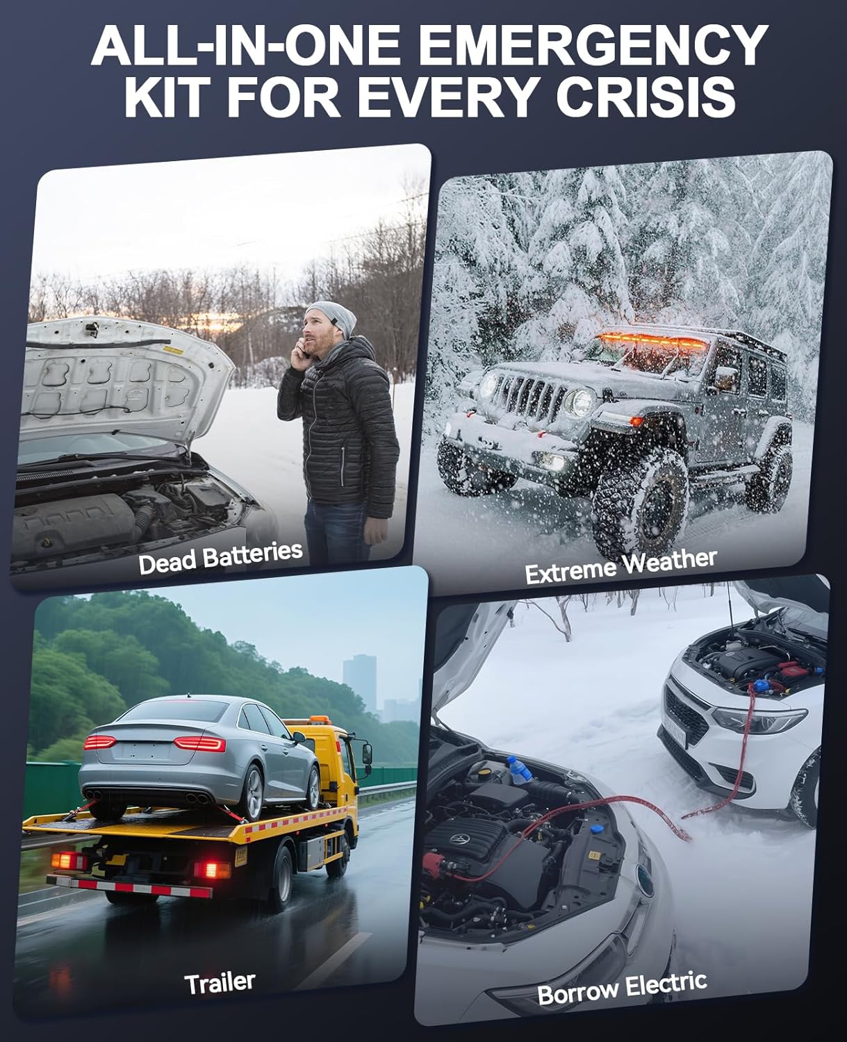 - 【Portable Power Bank】Beyond its primary function, this portable jumper starter also serves as a power bank, capable of charging phones, tablets, and other electronic devices. It's an essential jump starter pack for travelers and outdoor enthusiasts who need a reliable source of power on the go