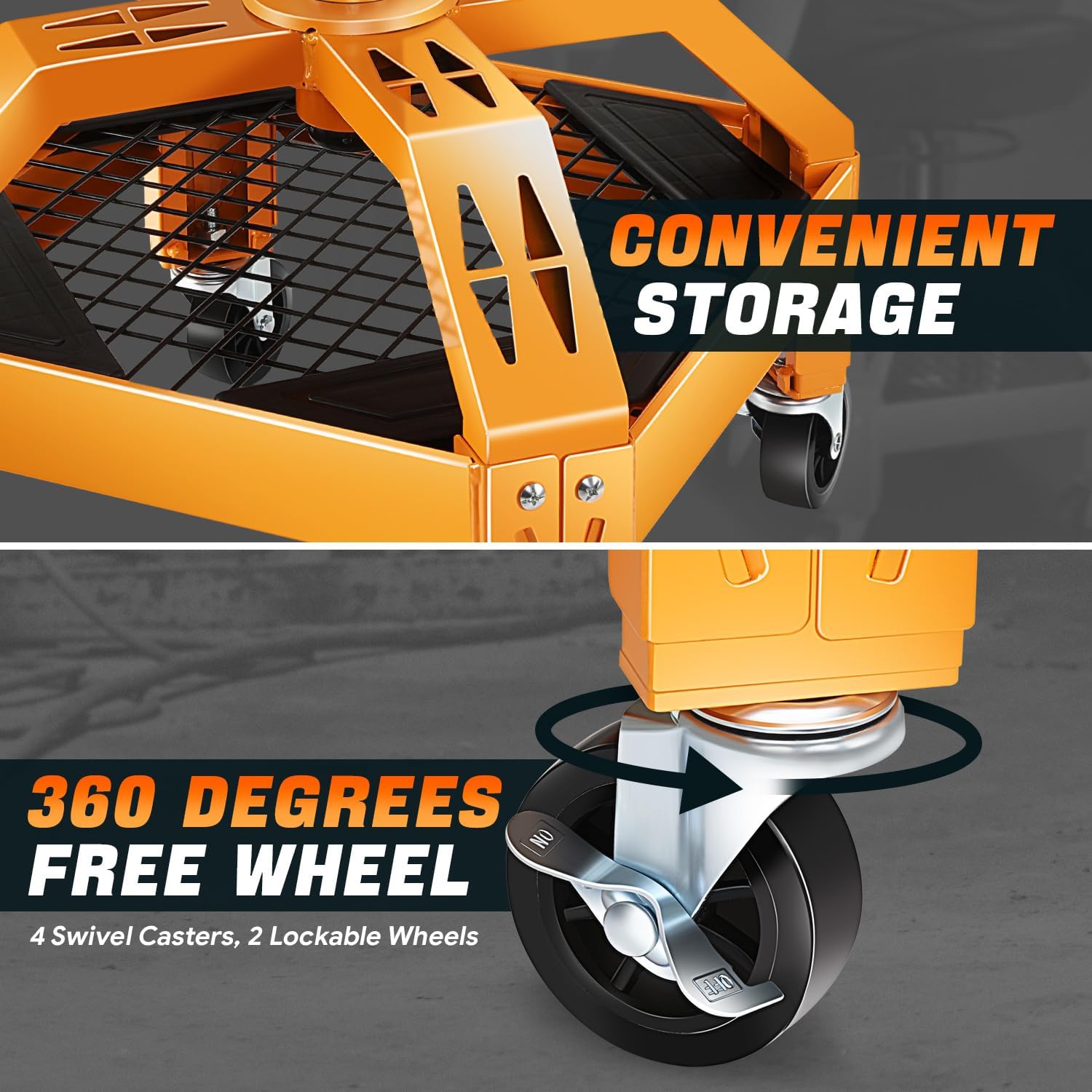 - Sturdy Construction - Stamped Steel Construction Frame With Yellow Painted Finish For Added Durability and Great Looks. This Mechanic Stool can Bearing 330 Pounds, Almost Anyone can Take a Seat.