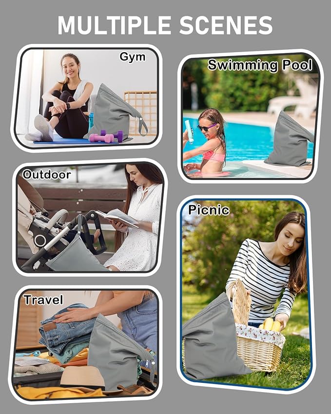 - Waterproof: Made from durable, waterproof material, the 2L camo roll top bag ensures your items stay dry in any wet environment. The roll-top closure provides a secure, watertight seal. The zippered wet bag with one pocket is suitable for protecting contents from either getting wet or the wet contents leaking out, which is more made for keeping a wet swimsuit, gym clothes, diapers, etc.