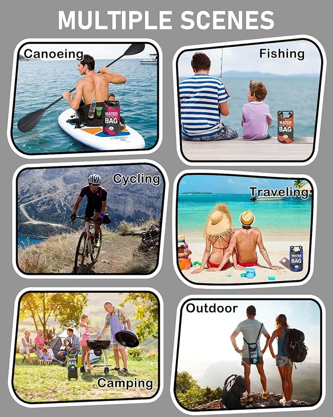 - Great Matching for Versatile Use: The 2L roll top backpack sack is very useful for water activities, including swimming, kayaking, beach trips, rafting, boating, hiking, camping, and fishing. Perfect for both wet and dry storage needs.