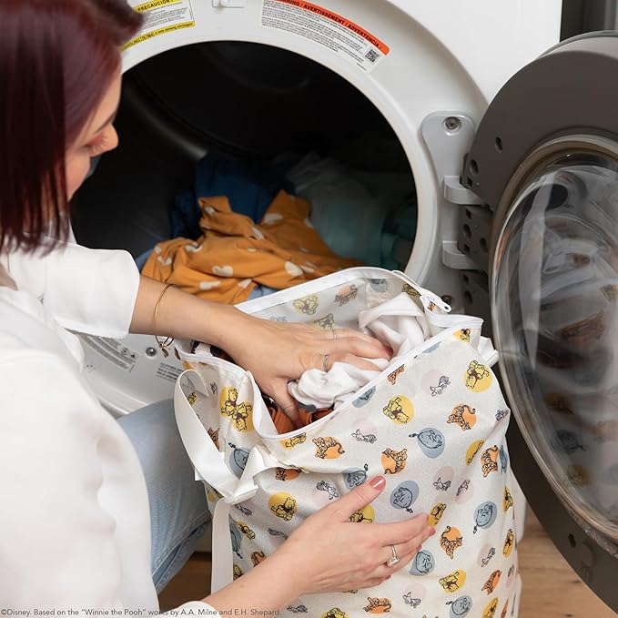 Bumkins Disney Waterproof Hanging Wet Bag Large for Baby, Laundry, Dirty Clothes, Travel, Swim Suit, Cloth Diapers, Pool, Towels, Daycare, Beach, Zip Reusable Bag, Vacation Packing, XL Winnie the Pooh