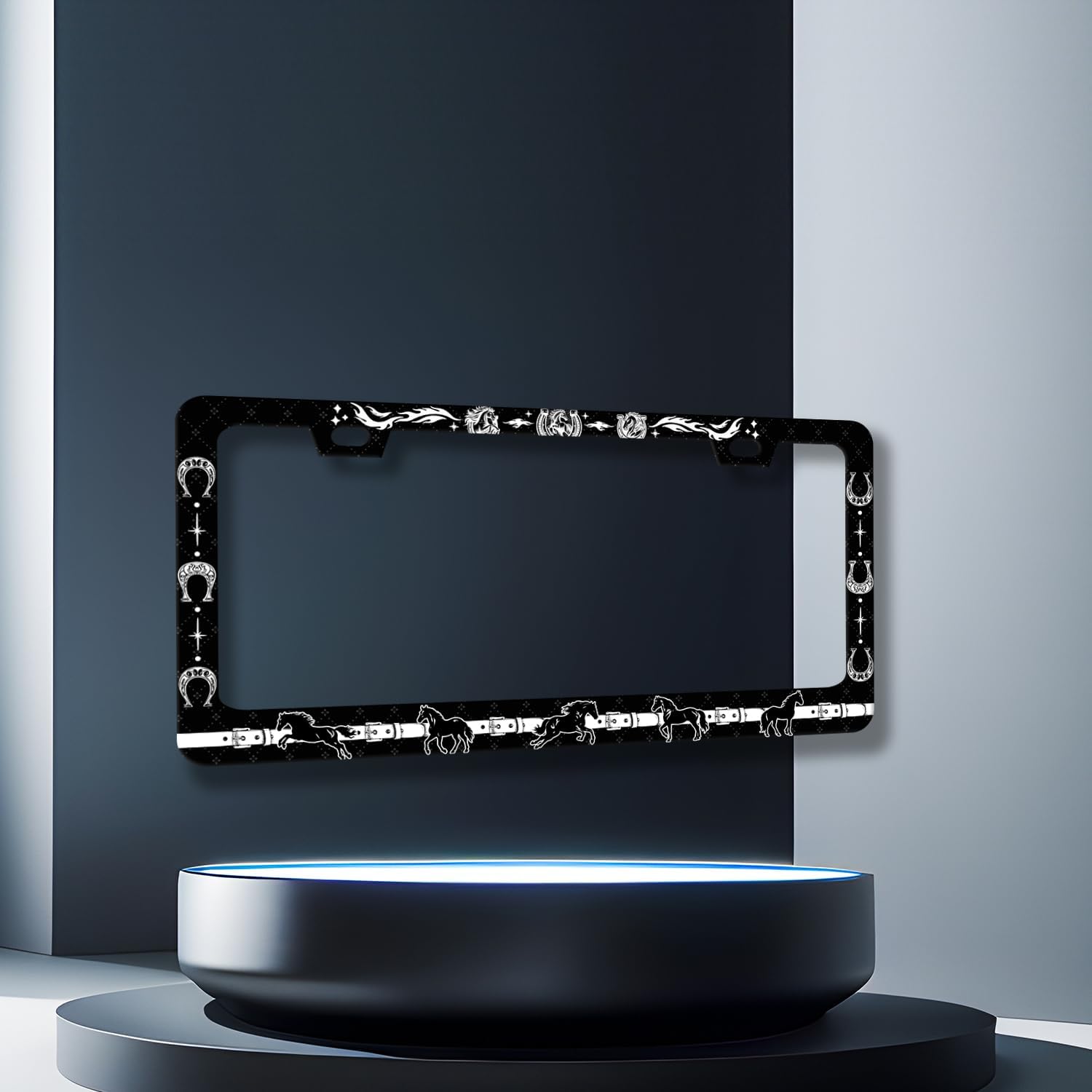 Horse License Plate Frame Horseshoe License Plate Holder for Front and Rear Car Tags Stainless Steel Auto Parts Animal Funny License Plate for Men Women Decoration with Screws 12" x 6" s