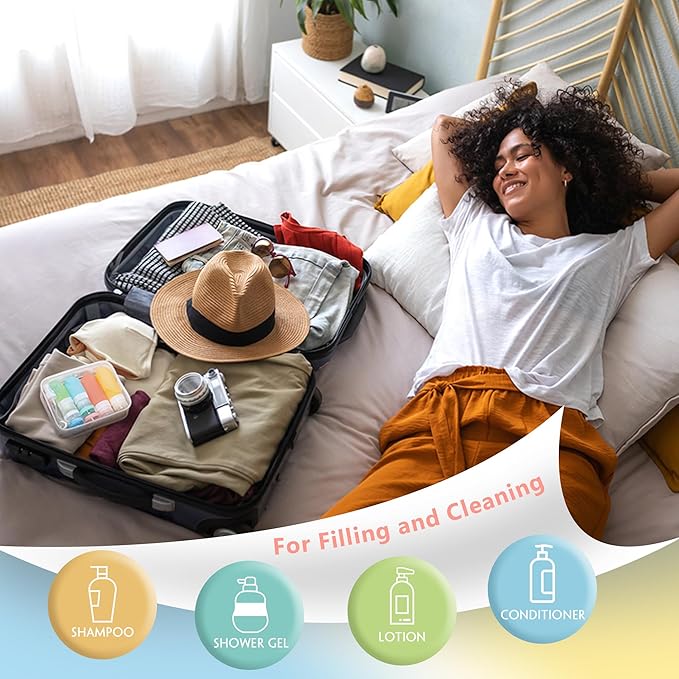 - Refillable travel size bottles has A Wide Mouth Design makes it easier to pour thicker liquids and easy cleaning with a brush on the inside of the tubes.