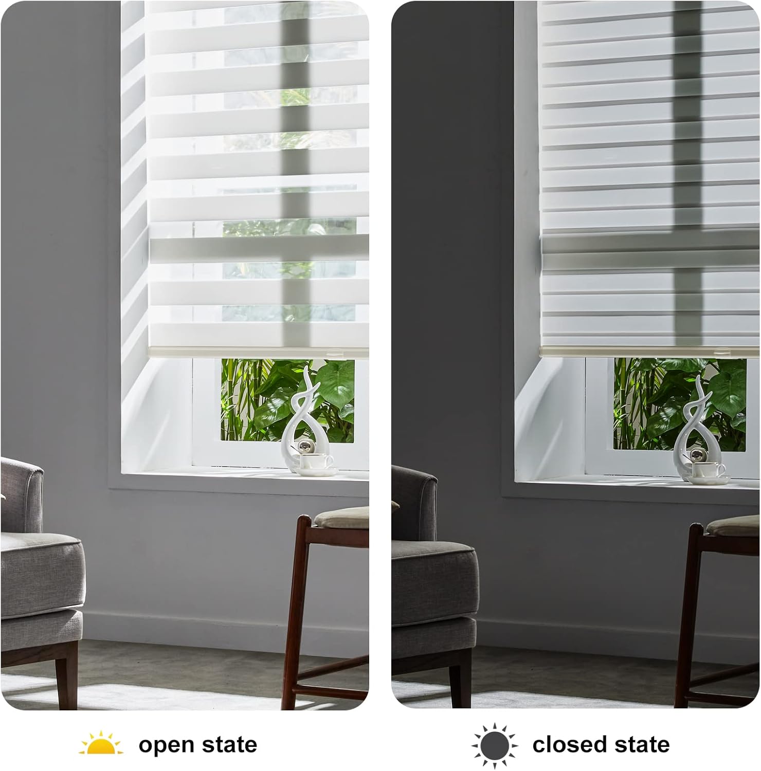 - 【Upgrade High-Quality Accessories】Our blind has been upgraded to have a sturdier bottom rail to prevent the fabric from fraying, which makes the two layers of fabrics more closely fit, maximizing the effect of shading. An anti-collision strip installed under the rail for protecting your window frame. Color-matched valance and the aluminum bottom bar suitable for all situations.