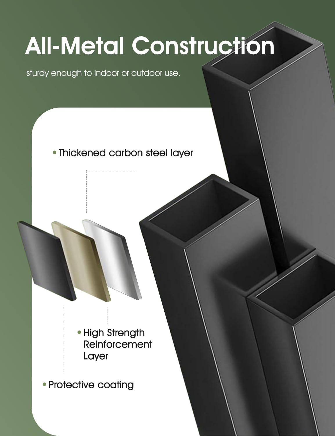 - 【Built to Handle Heavy Loads】 Constructed from high-quality carbon steel, this garden tool organizer supports up to 100 lbs. The rust-resistant baked enamel finish adds durability and a polished look for long-lasting use