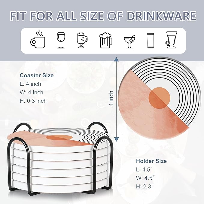 - Convenient Storage: When Not In Use, Store These Coasters In The Included Black Metal Holder For a Clutter-Free Living Space.
