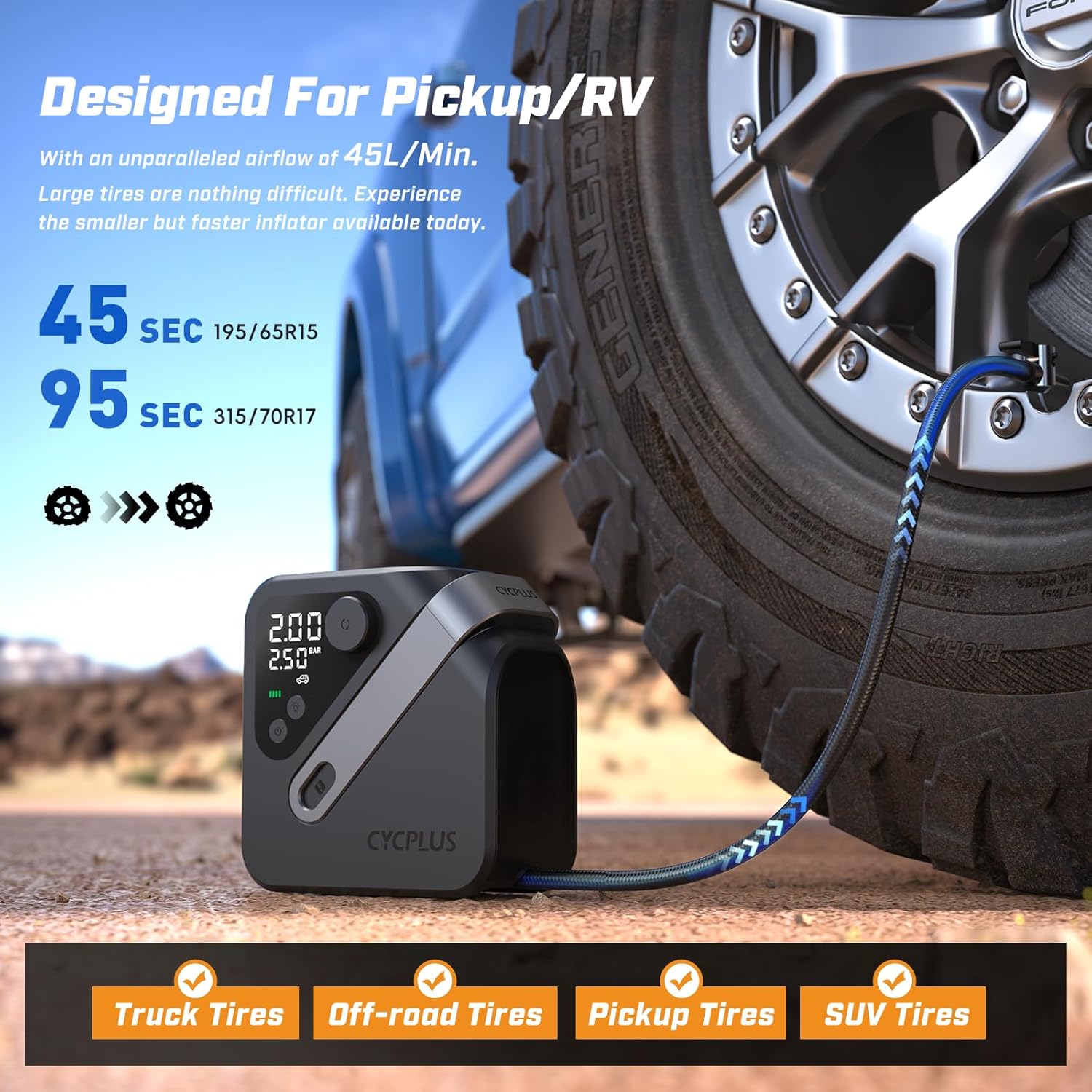 CYCPLUS AL7 Tire Inflator Portable Air Compressor for Trucks & Pickups – 4X Faster High-Powered Tire Inflator, Portable Design for Heavy-duty Vehicle & Inflatables, Dual-Use Type