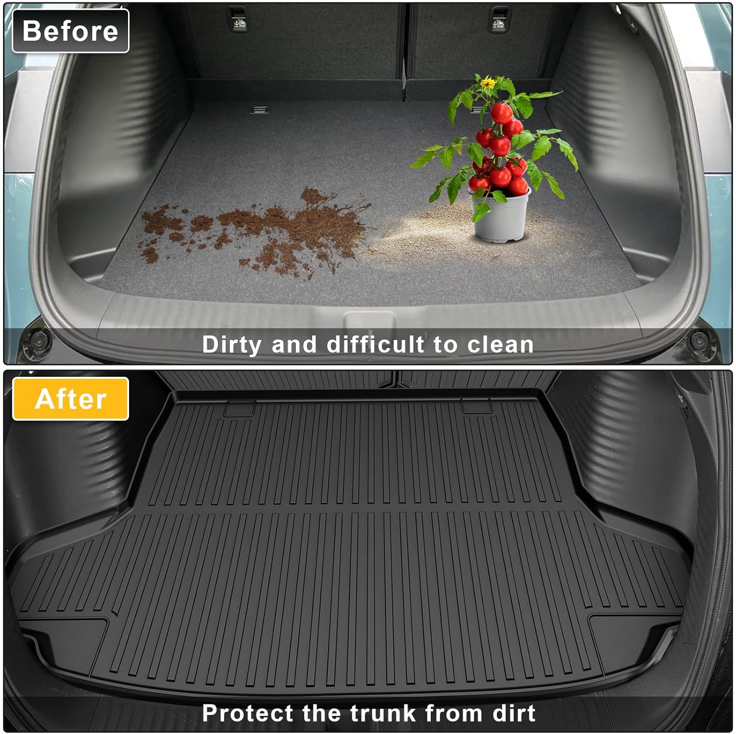 - 【All Weather Protection】 Full set car cargo liners and back seat cover designed with high hemming to better protect car carpets, against dust, mud, salt, rain, snow, and sand, achieving all-weather protection, easy to clean and you no longer have to worry about bad weather damaging the car floors.