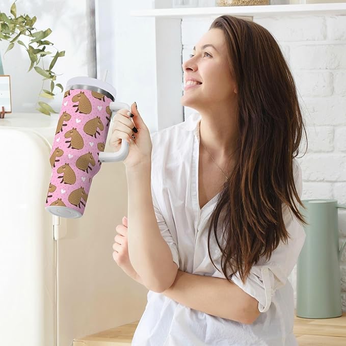 Boccsty Heart Cute Cartoon Capybara Insulated Tumblers Reusable Stainless Steel Tumbler 30 oz Cup Coffee Travel Mug Water Bottle with Handle & Flip Straw for Home Office Car