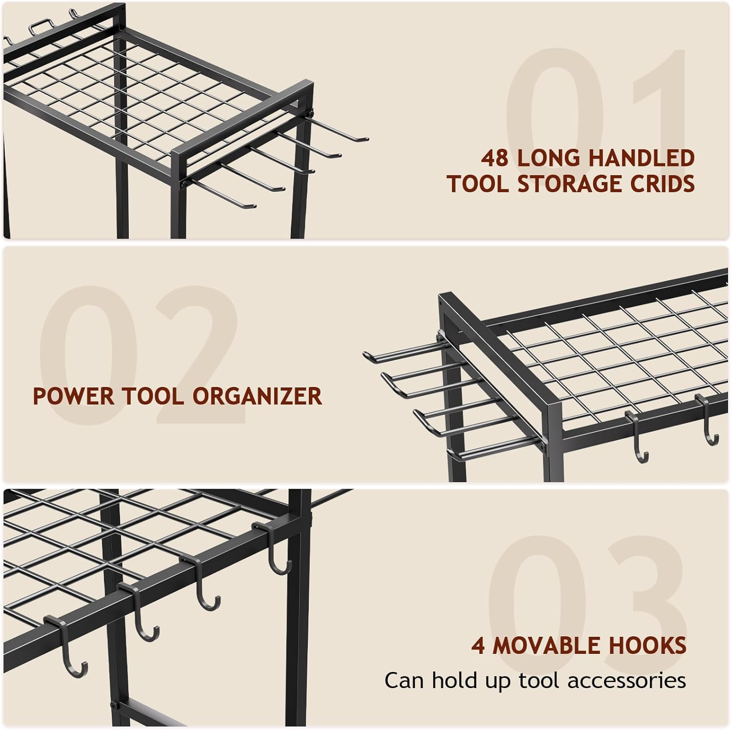 - 【Easy to move and assemble】: All necessary hardware is included, and the instruction manual offers clear, step-by-step guidance, enabling you to assemble it within minutes. storage rack can be easily moved and placed wherever tools are needed, making it a must-have tool organizer.
