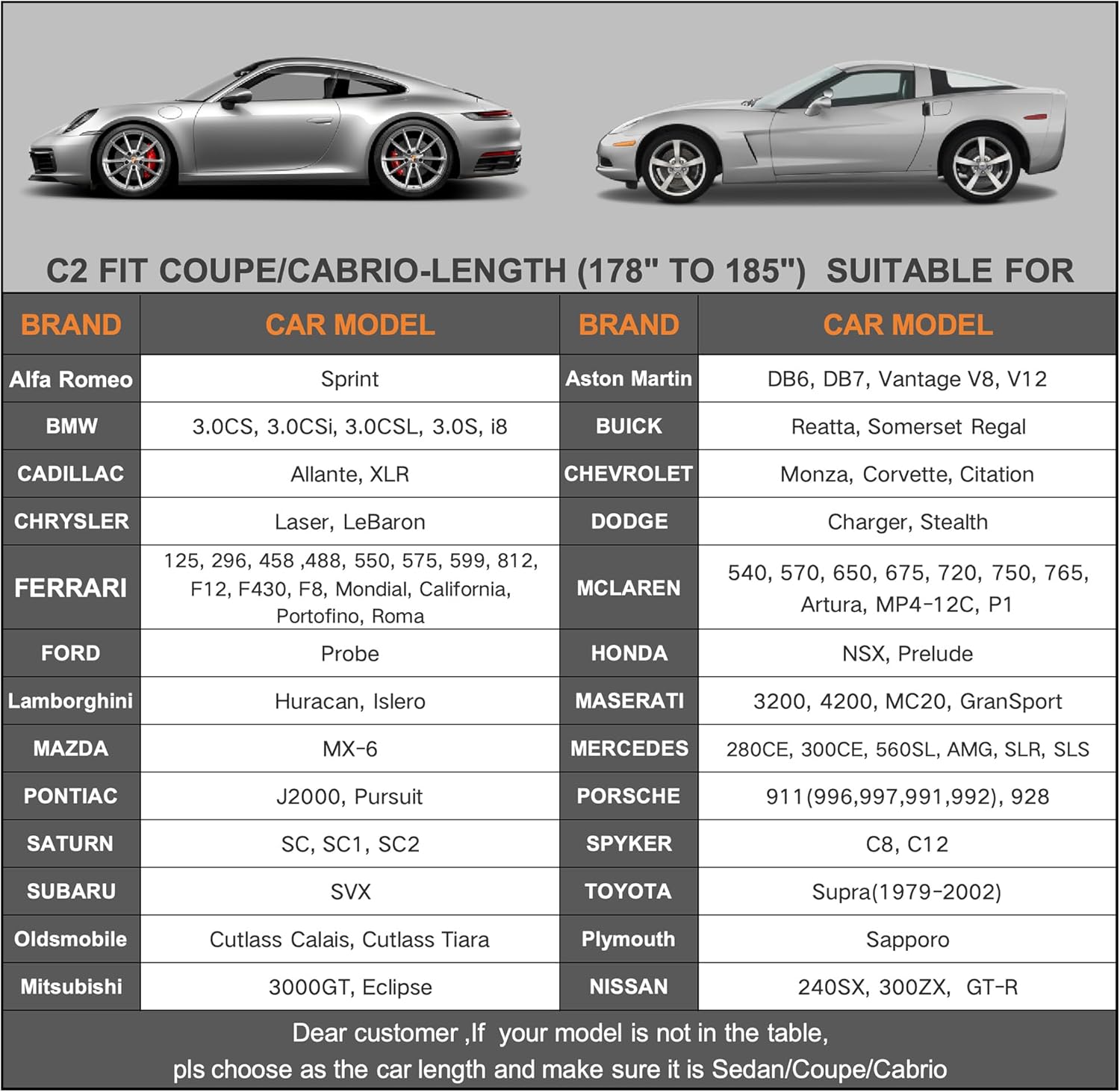- 【Dimension C2】Universal fit for sedan which length is 178-185 inch (Not for hatchback and SUV ). Suitable for BMW 3/4 Series, Mitsubishi lancer/Eclipse, Ferrari California, Lexus IS250C/IS350C etc.