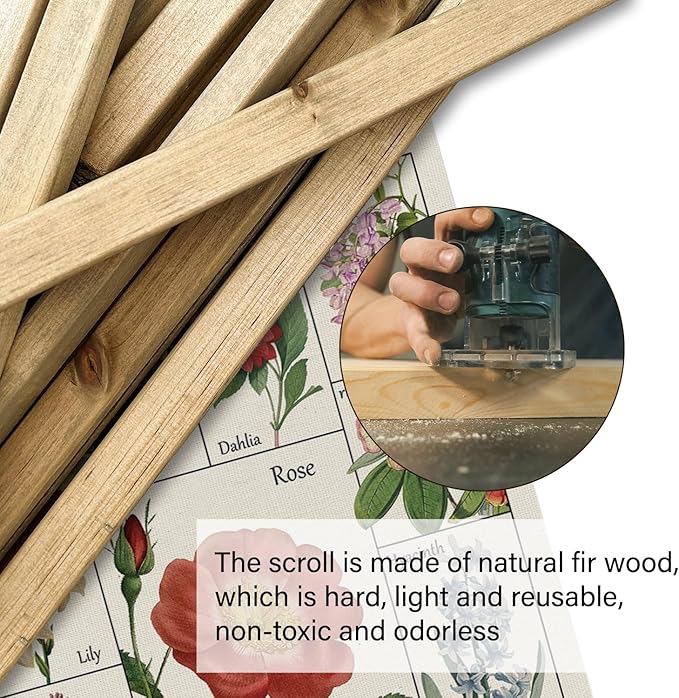 Vintage Spring Flower Poster Print, Botanical Educational Illustration, Rustic Wooden Hanger Frame, Linen Canvas Wall Art Decor, Farmhouse Cottagecore Style for Living Room Bedroom Office (12" x 16")