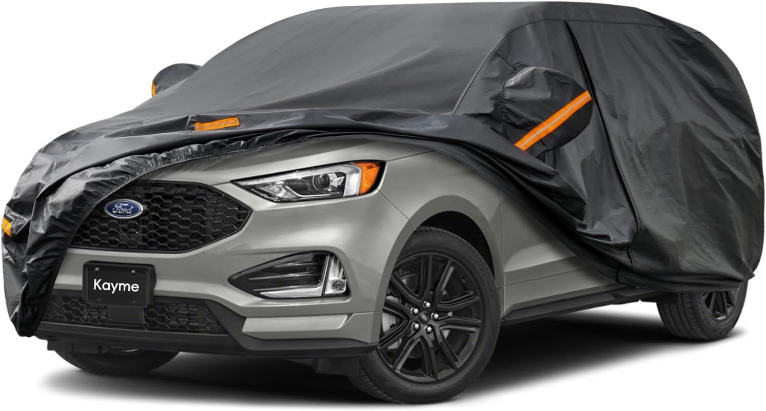 Kayme 7 Layers SUV Car Cover Custom Fit for Ford Edge (2015-2025) Waterproof All Weather for Automobiles, Outdoor Full Cover Rain Sun UV Protection.Black