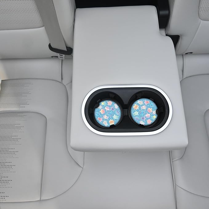 2 Pack Absorbent Car Coasters for Cup Holders,2.56" Ceramic Coasters with Cork Back and Finger Slot,Cute Sea Turtles Pattern Auto Accessories for Women & Men.