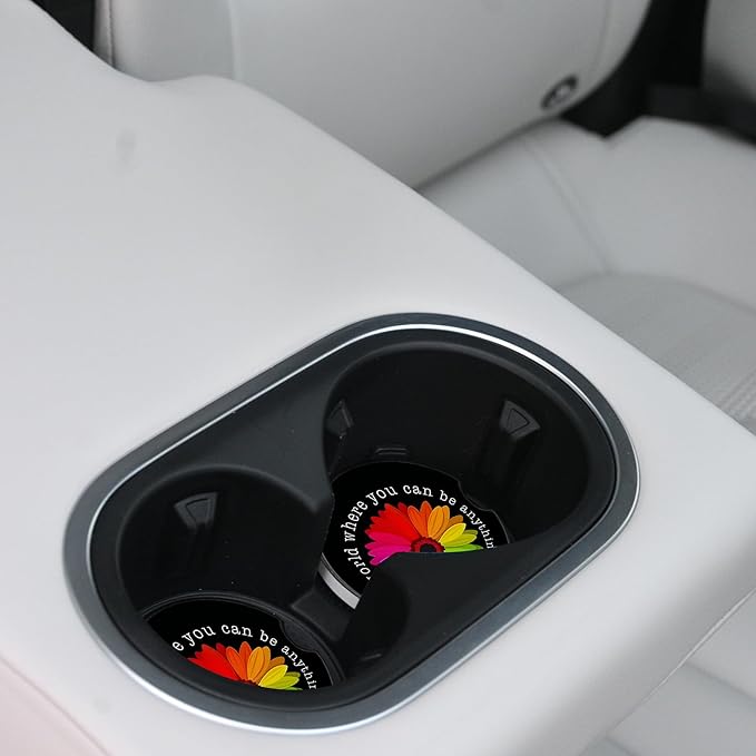 Absorbent Car Coasters 2 Pack for Cup Holders, 2.56" Ceramic Stone & Non-Scratch Cork Base Drink Coasters, Auto Accessories for Women & Men(Colorful Sunflower)