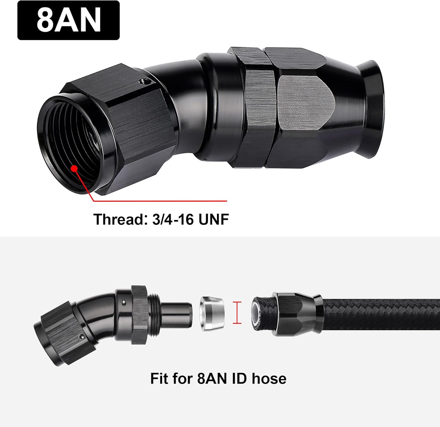 - [Product Size & Parameter] Size: 8AN. Thread Size: 3/4-16 UNF. Working Pressure: 1500PSI. Working Temperature Range: -40°F-250°F. Angle: 30 Degrees. Note: Please verify the hose size before purchase.