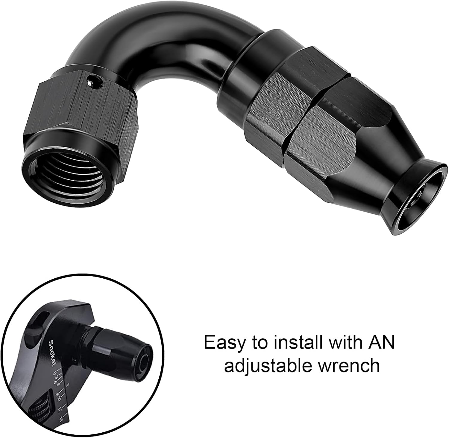 - [Application] These fittings are ONLY used with PTFE fuel lines for E85, alcohol, nitro, clutch, nitrous, power steering, oiling, hydraulics, and vacuum applications. A 360° swivel design allows for easy assembly.