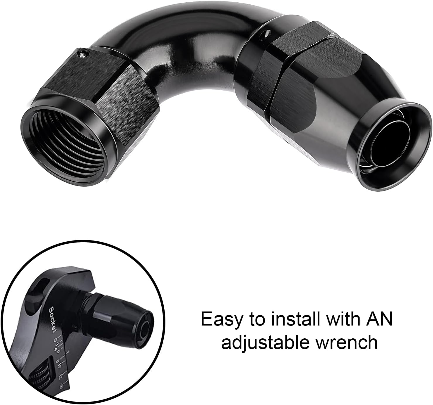 EVIL ENERGY 8AN 120 Degree PTFE One Piece Full Flow End Hose Fitting Aluminum Black
