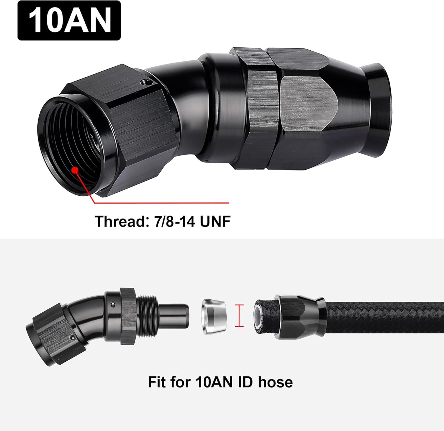 - [Product Size & Parameter] Size: 10AN. Thread Size: 7/8-14 UNF. Working Pressure: 1500PSI. Working Temperature Range: -40°F-250°F. Angle: 30 Degrees. Note: Please verify the hose size before purchase.