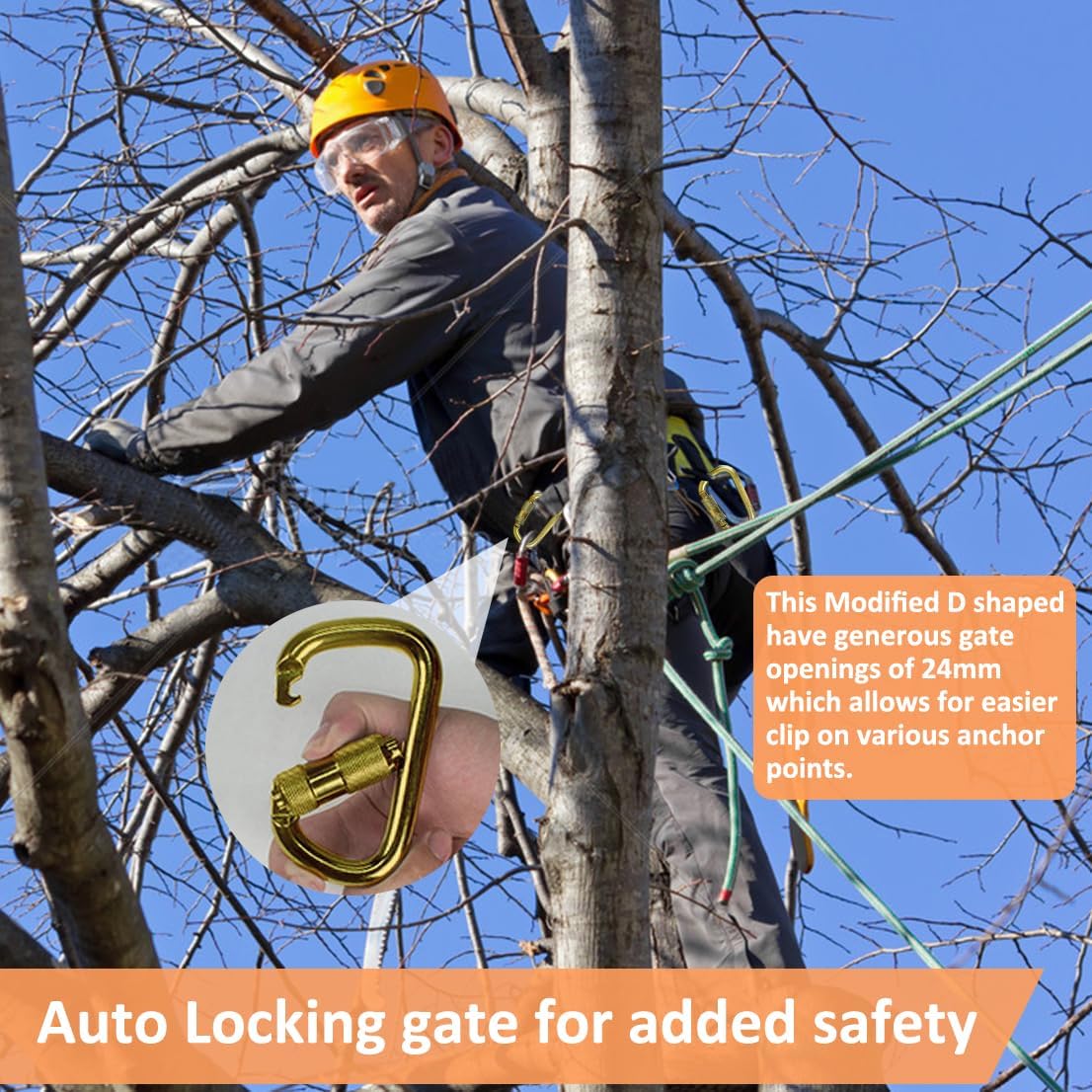 - Heavy-duty Climbing Buckle: We utilize high-strength alloy steel to provide you with outstanding performance. The long axis strength reaches 45kN (10,000 pounds), while the lateral load capacity can reach 16kN (3,596 pounds). Our product undergoes heat treatment using cold-formed steel and is combined with forging techniques to ensure reliability and durability. Whether you are tree climbing, mountaineering, speed descending, rescuing, enjoying camping, hiking, or securing large dogs, our prod