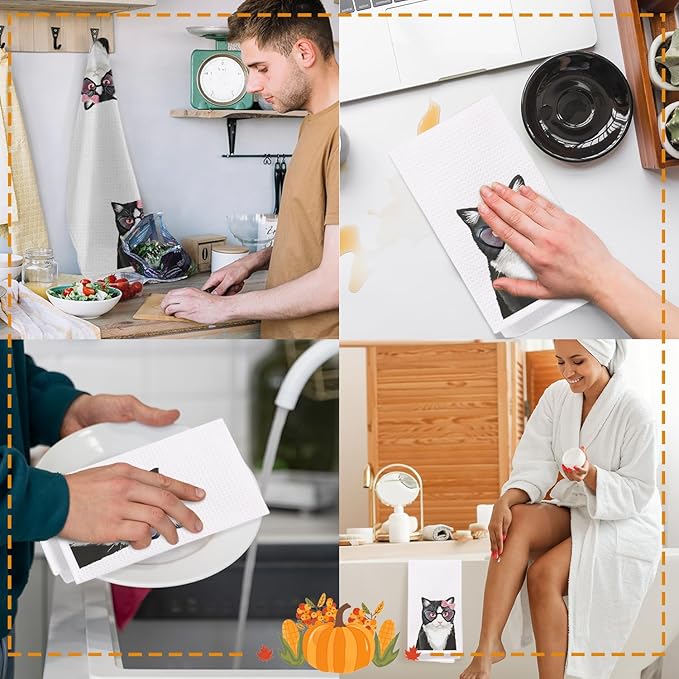 - Multi-Functional: These elegantly designed kitchen towels not only add a charming touch to your decor but also serve various functions, from drying dishes to wiping countertops, enhancing your kitchen's look.