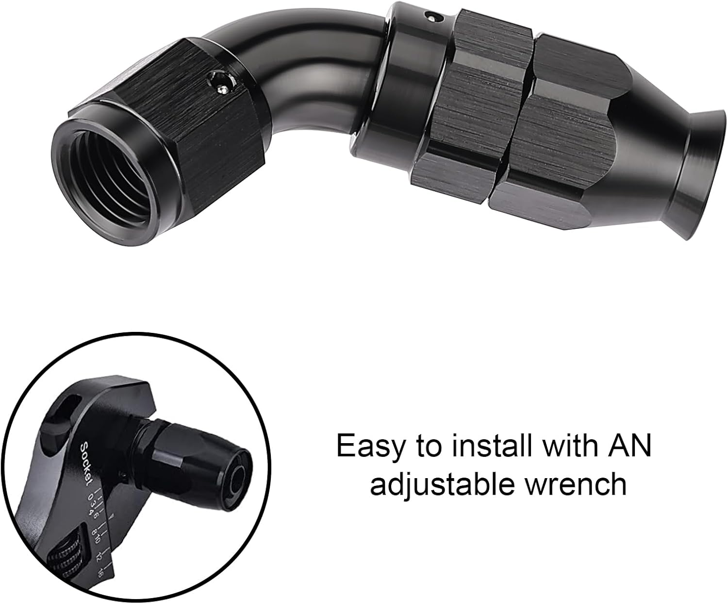 - [Application] These fittings are ONLY used with PTFE fuel lines for E85, alcohol, nitro, clutch, nitrous, power steering, oiling, hydraulics, and vacuum applications. A 360° swivel design allows for easy assembly.