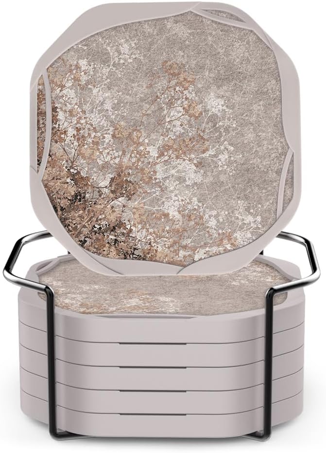 UMIRRO Absorbent Coasters for Drinks with Holder, Floral Silicone Cup Coaster with Felt Insert for Coffee Table Decor, Small Unique Birthday Gift Ideas for Men Dad Him Women Mom Her, 4", Set of 6